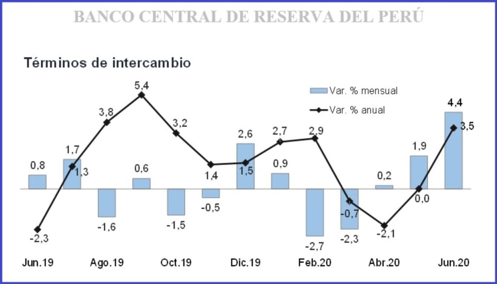 El Banco Central de Reserva (BCR) destacó hoy que los términos de intercambio registraron un aumento de 4.4% en junio del presente año con respecto al mes anterior y representa la tasa mensual de crecimiento más alta desde noviembre de 2016.